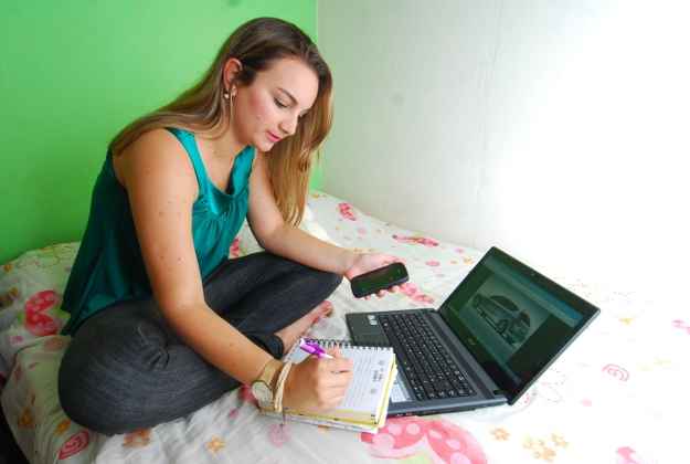 A universitária Alana Lopes percorre cerca de 60 km por dia, entre a sua casa no bairro do Pina, no Recife, o trabalho em Jaboatão dos Guararapes e a universidade, na Cidade Universitária. O percurso é sempre de ônibus ou com caronas dos amigos. Mas a sua meta é até o próximo ano comprar o seu primeiro carro. Dentro do seu orçamento só cabe uma parcela de no máximo R$ 300. Com esse valor é praticamente impossível sair motorizada da loja, a não ser que ela opte por uma carta de consórcio. Se ela morasse em outro país e tivesse a mesma renda, com certeza, já teria adquirido o veículo.| Alana Lopes faz as contas para comprar o seu primeiro carro em 2013 |